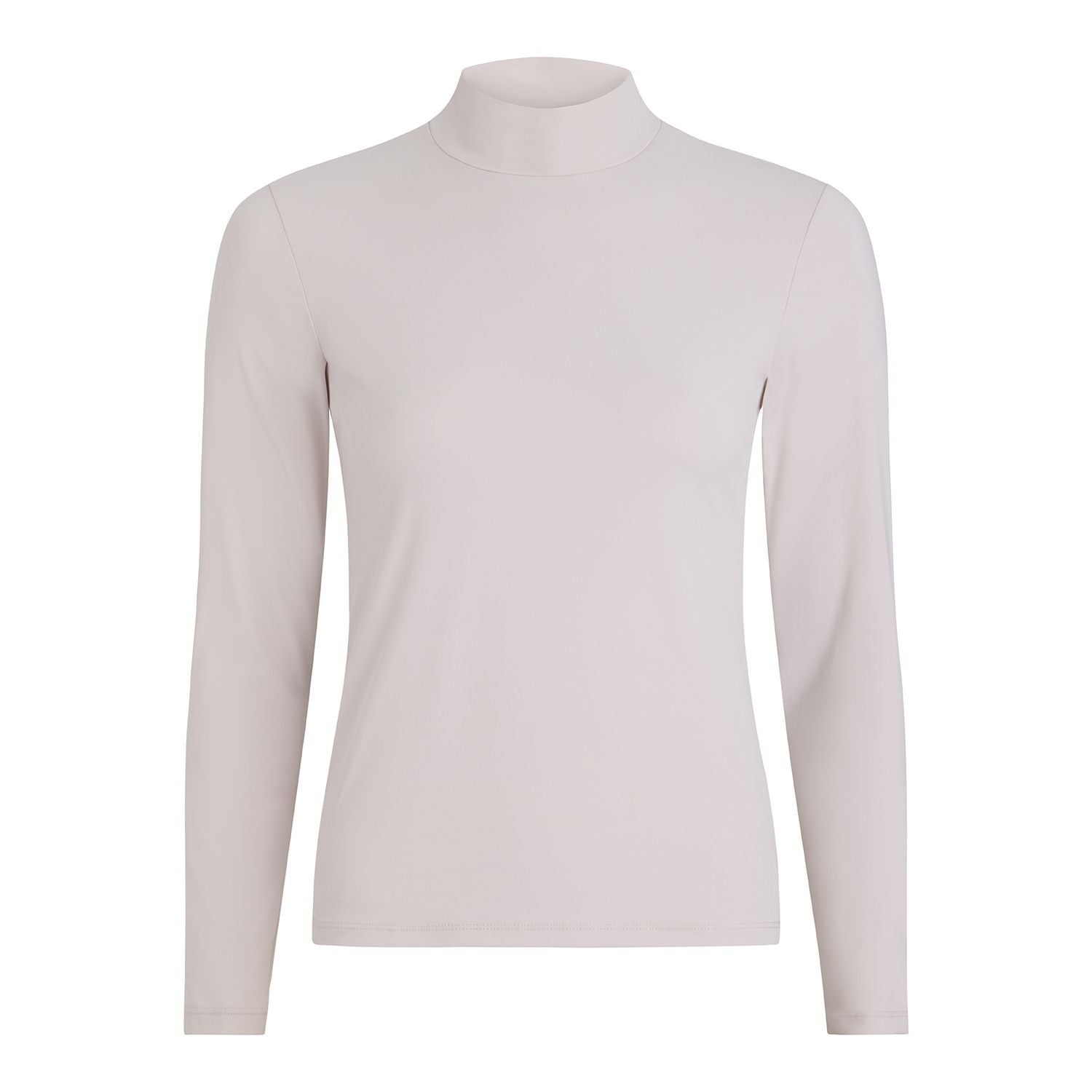 • The Ava Top is a sleek, form-fitting mock neck crafted from a smooth  microfiber jersey with four-way stretch.