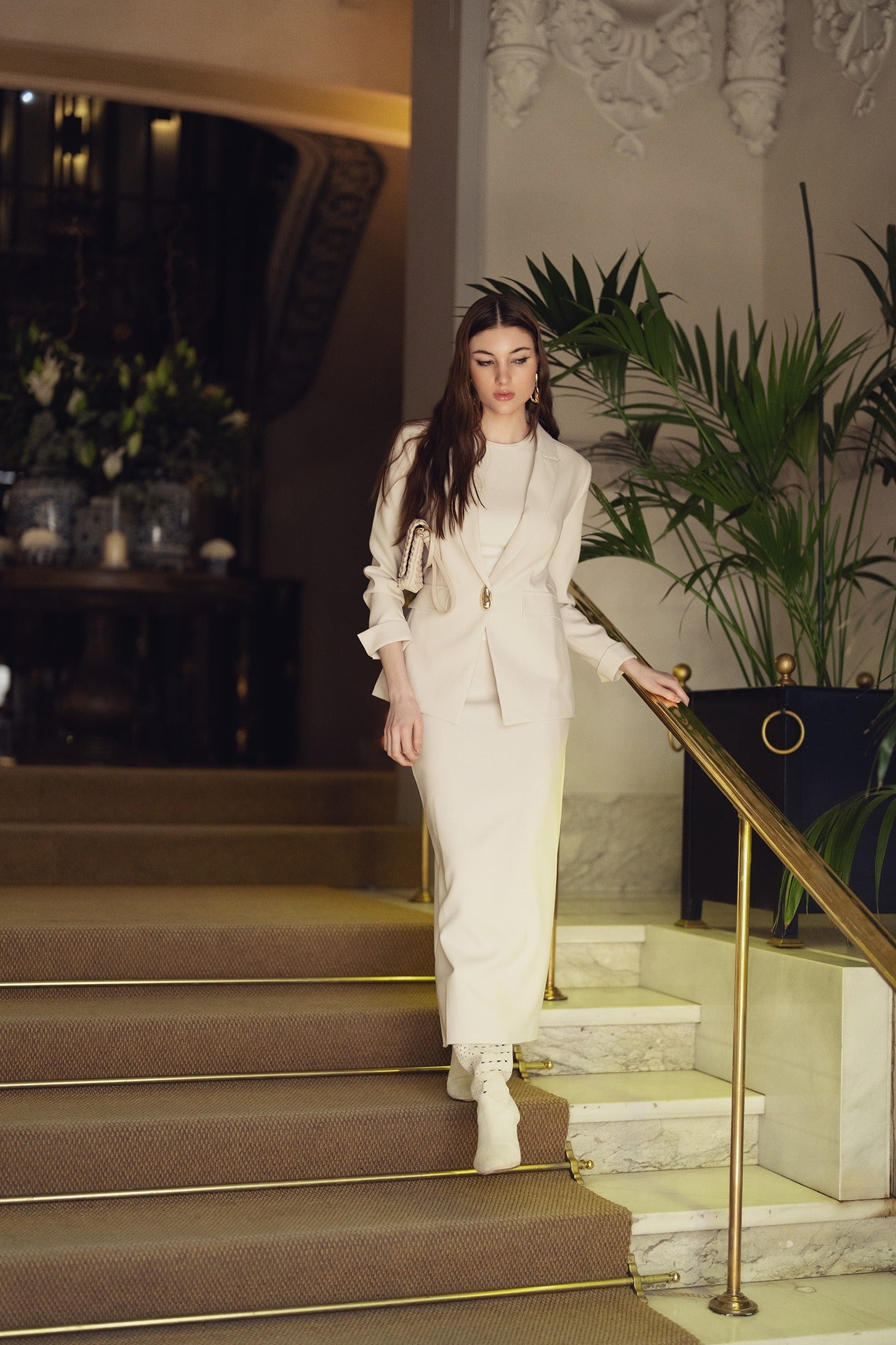 • Its clean lines and tailored silhouette create an elongated, polished look that pairs effortlessly with the Gwen Blazer for a sophisticated set.