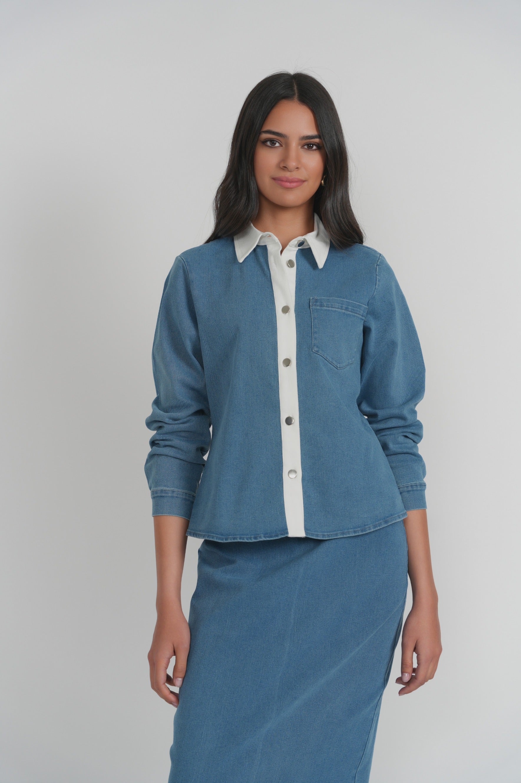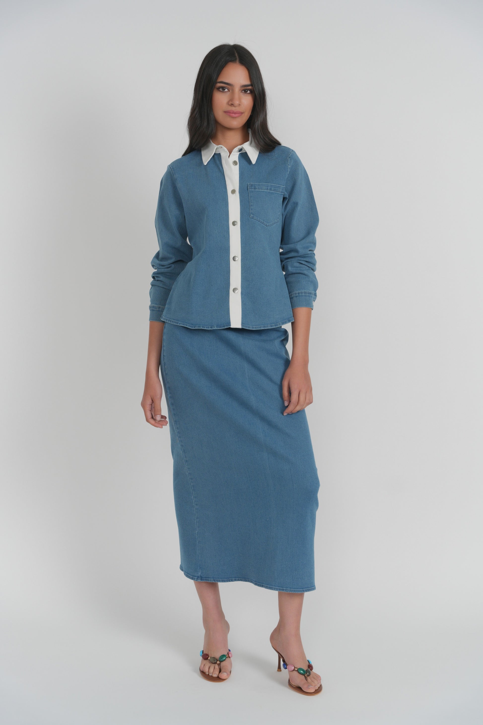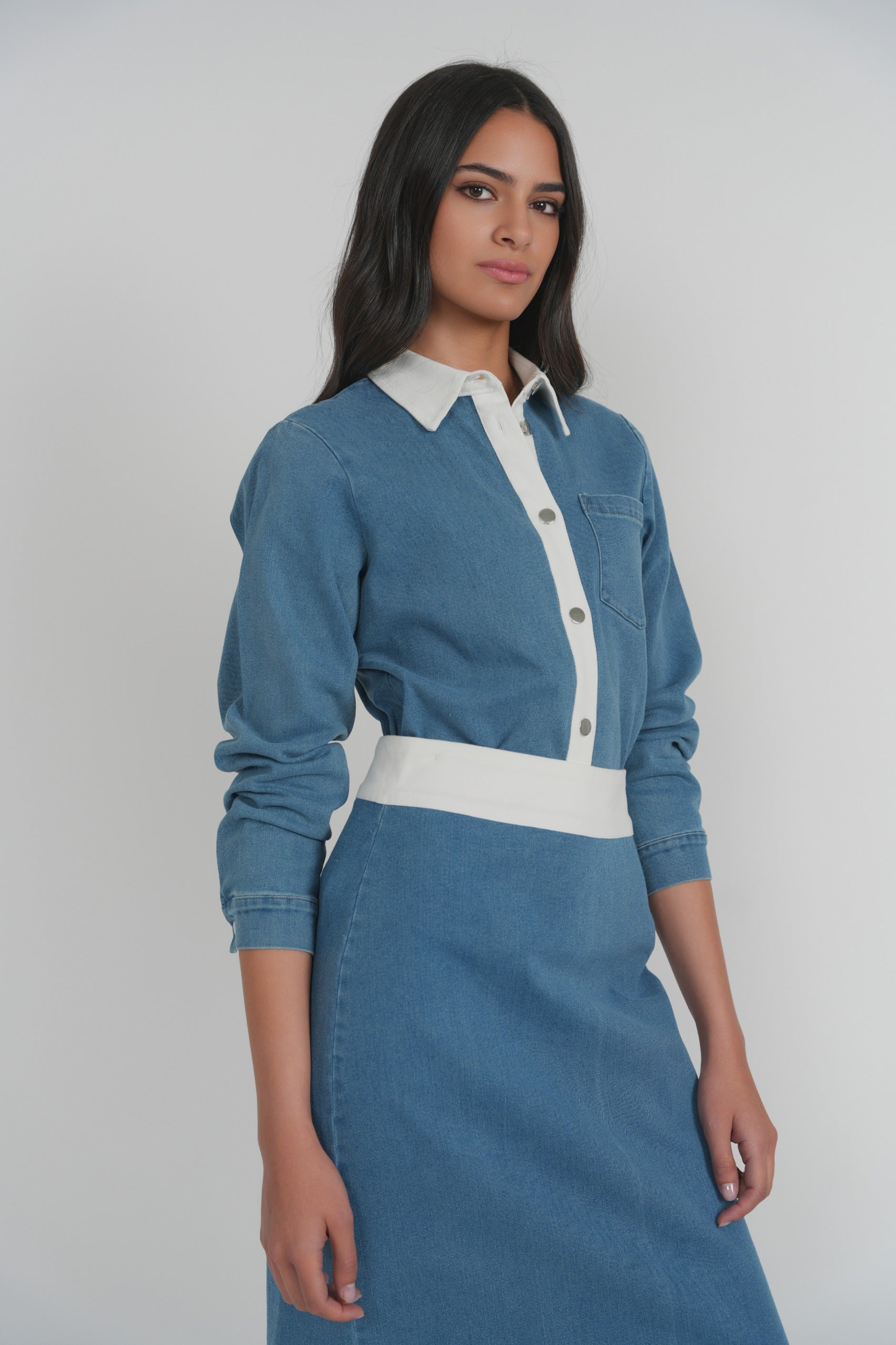 Crafted from structured denim with a soft hand, the Hydra Top features a clean neckline and subtle shaping through the body. Designed to sit close without feeling rigid, it offers a polished contrast when paired with lighter elements. Finished with minimal detailing for a sharp, contemporary look.