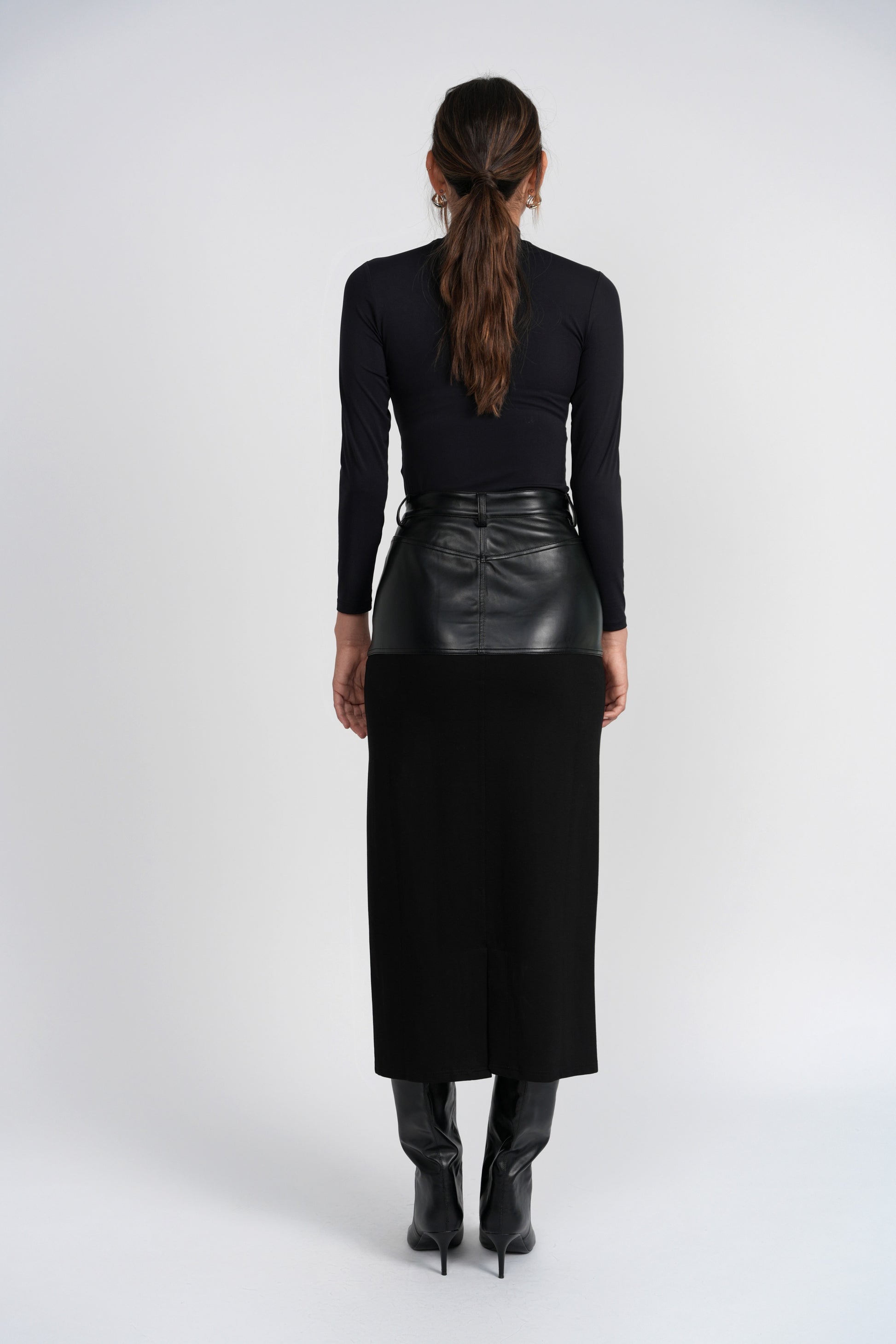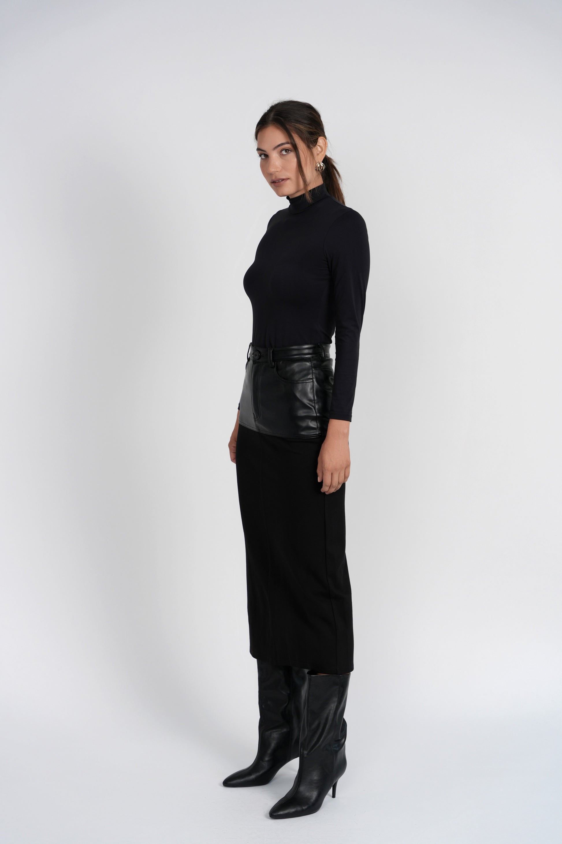 Styling Tip: Style it with a sleek knit or the Theo bodysuit for a streamlined look. Add ankle boots and minimal jewelry for a city-ready outfit that feels both directional and effortless.