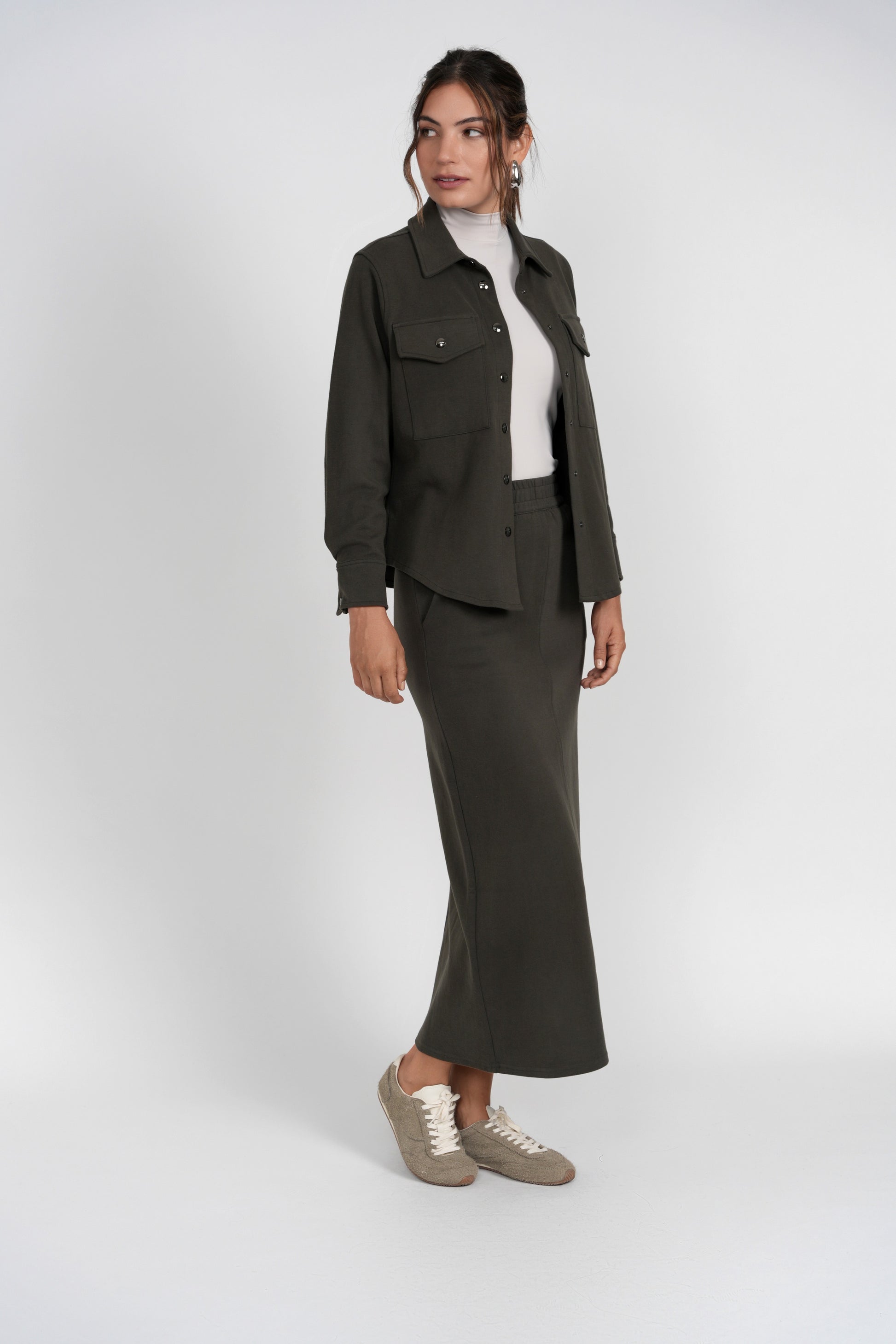 Styling Tip Style it with the matching shacket buttoned up or layered over a tucked-in tee. Add chunky sneakers or sleek flats and a minimal crossbody for a refined, street-ready ensemble that feels both relaxed and put-together.
