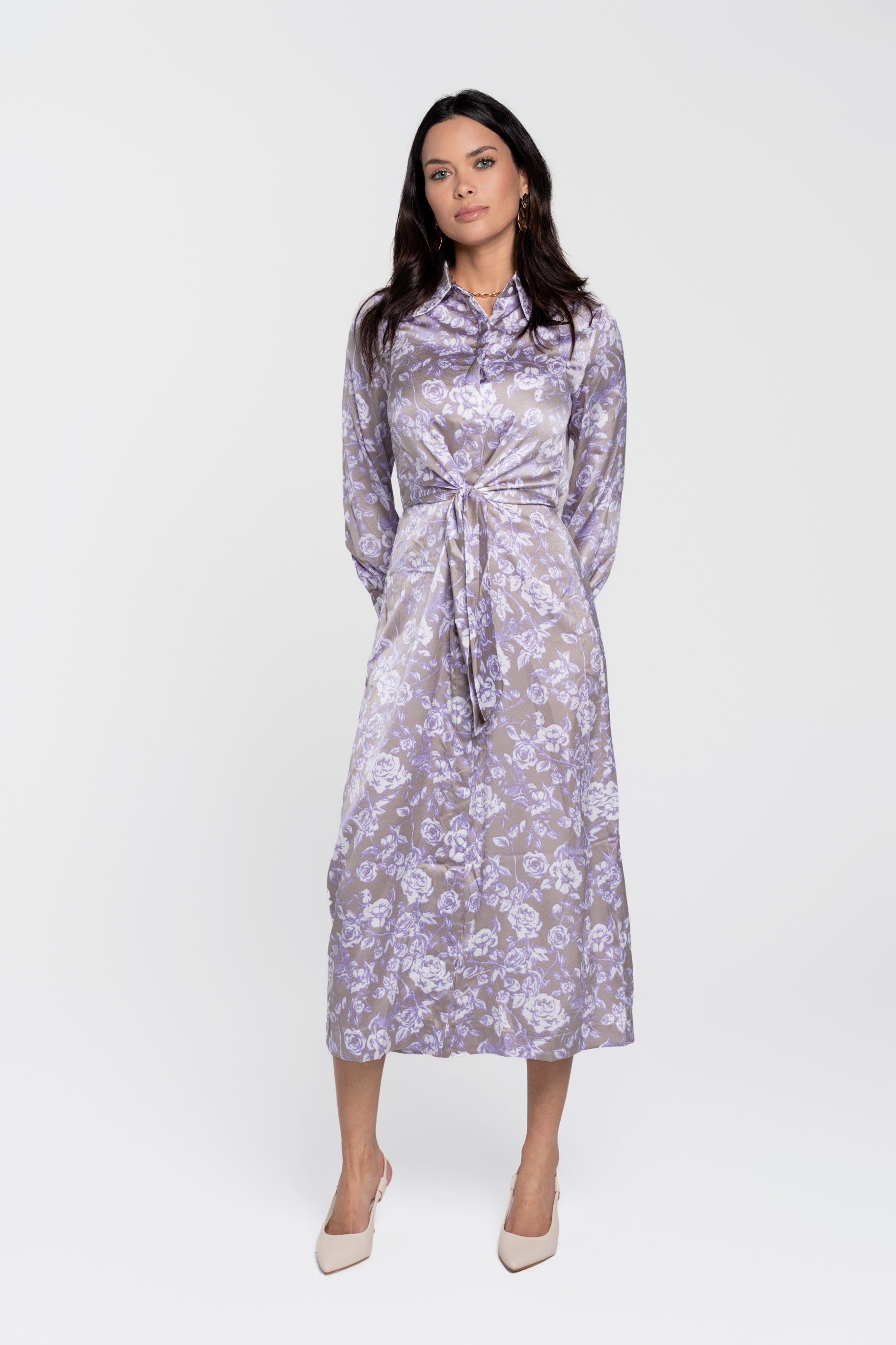 • Long sleeve satin shirt dress