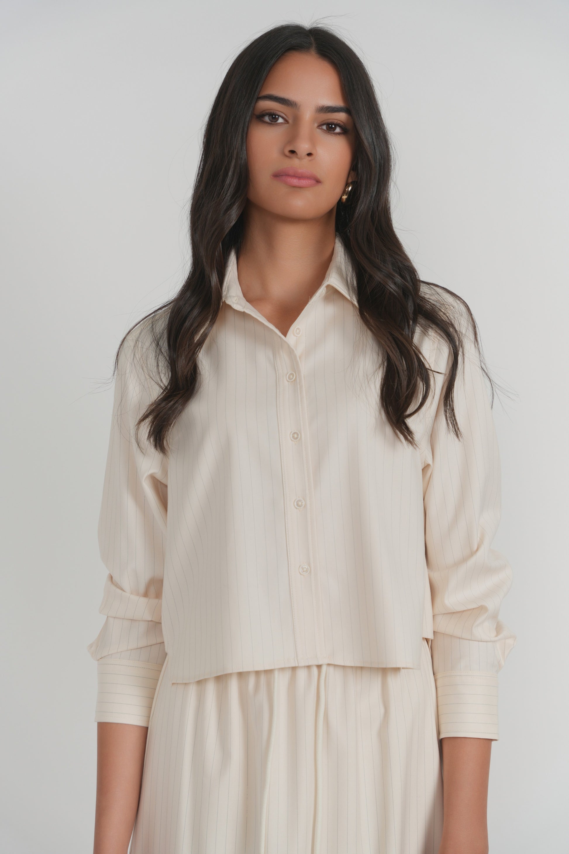 Designed with a structured collar and a refined button-down silhouette, it offers a sleek, versatile fit.