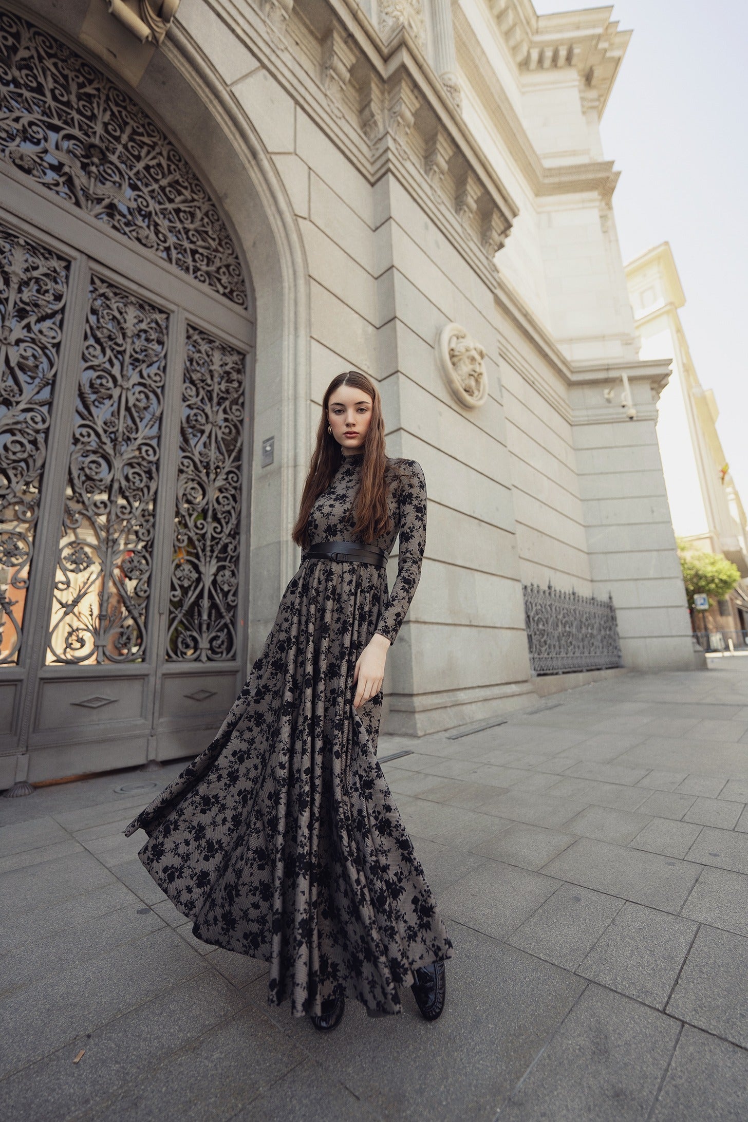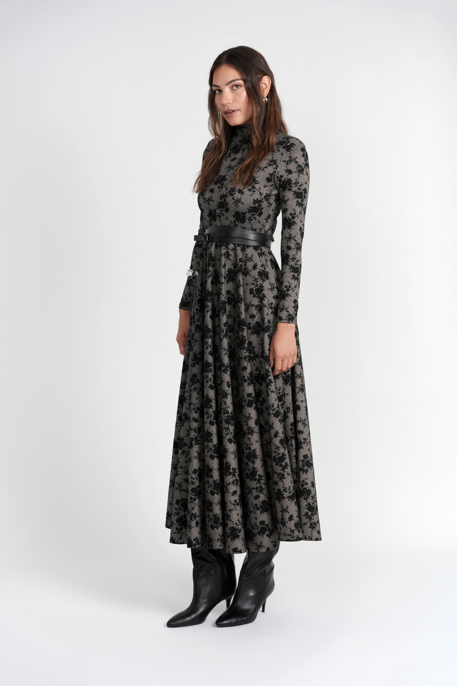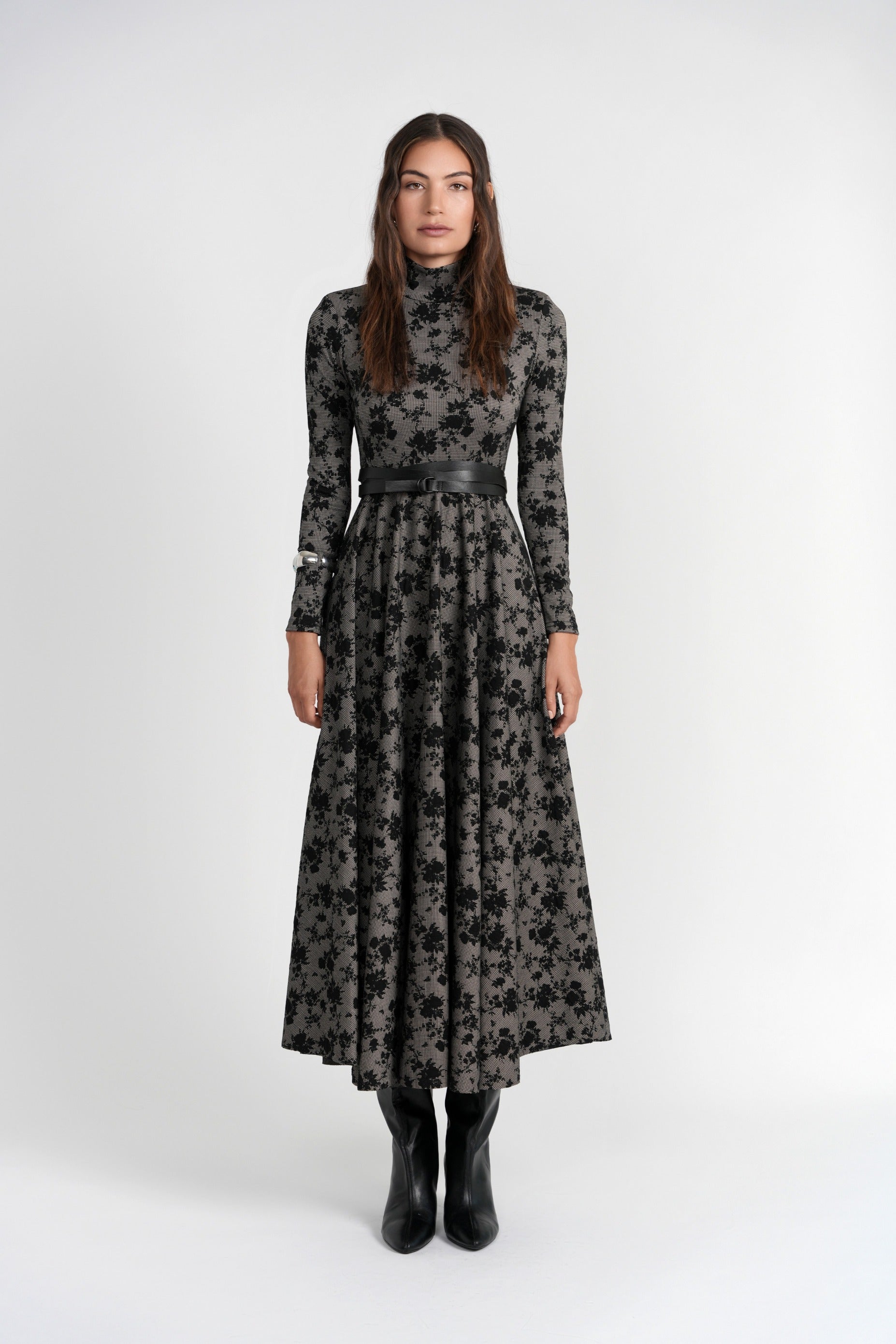 • The Norma Dress is a standout maxi featuring a unique floral houndstooth design that blends classic tailoring with a modern twist.