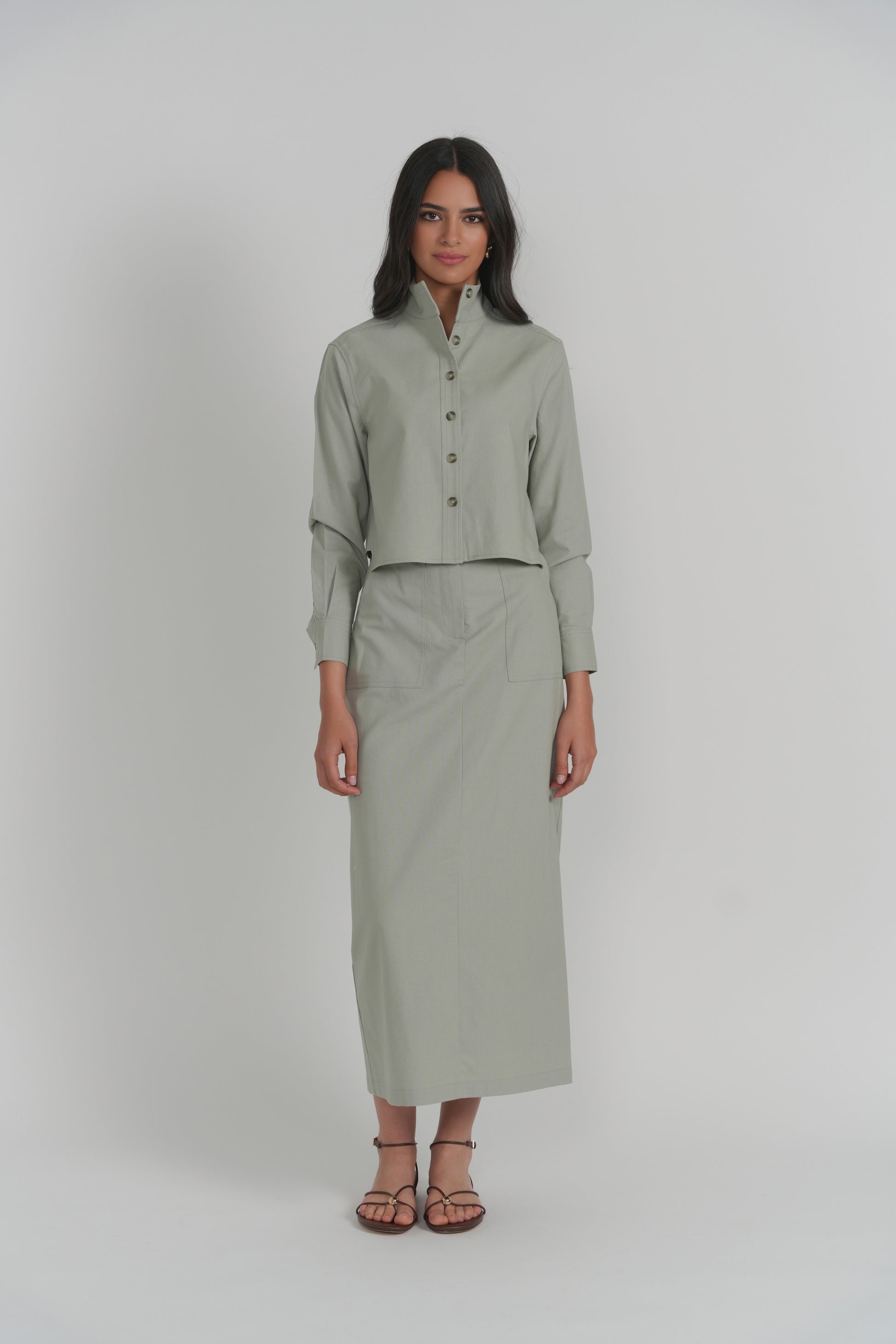 Crafted from a soft, breathable linen, the Provence Top blends effortless structure with everyday ease. Designed with a refined stand collar and a clean button-front closure, it offers a modern, polished silhouette while remaining lightweight and comfortable. Subtle shaping through the waist creates a flattering, feminine fit without feeling restrictive.