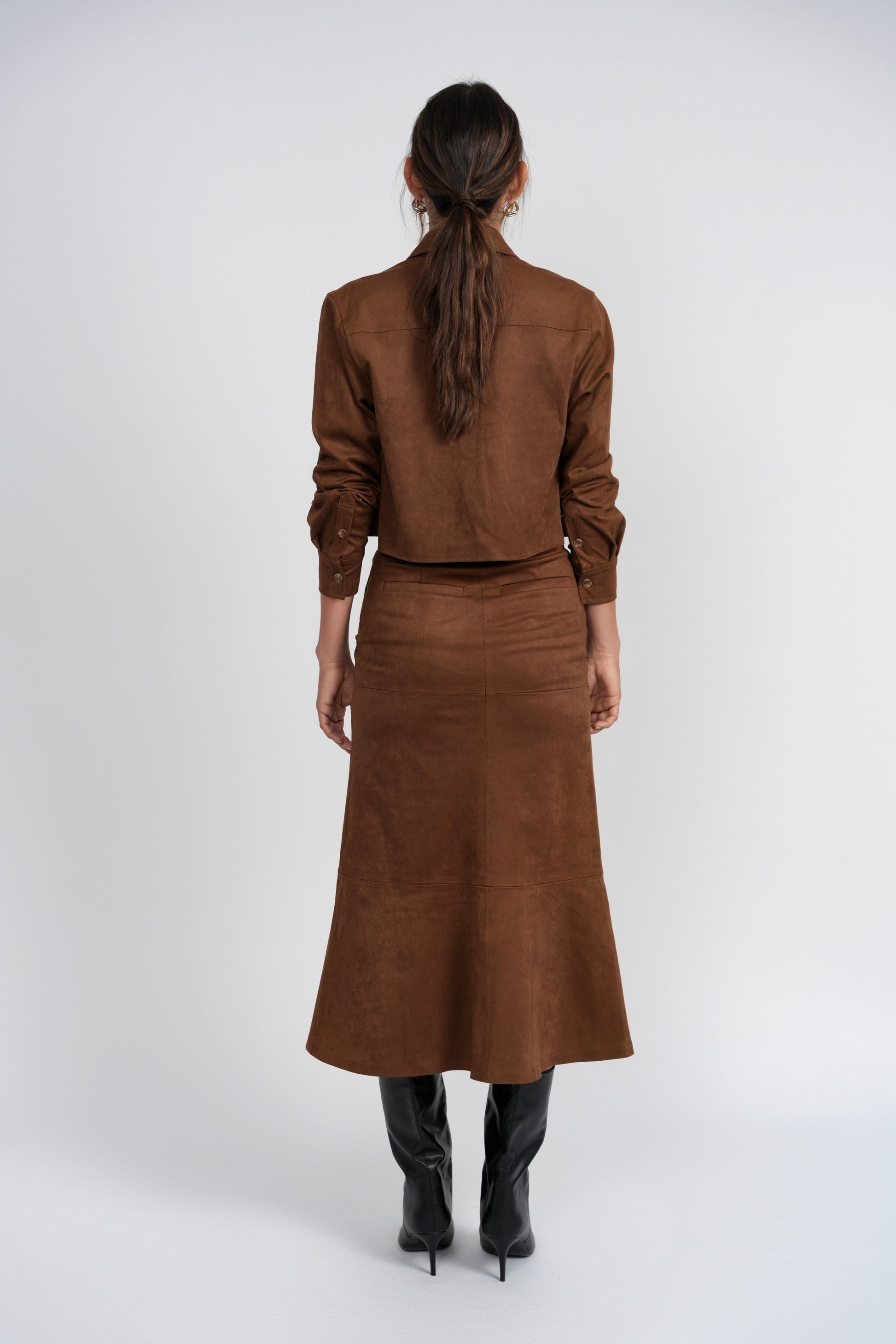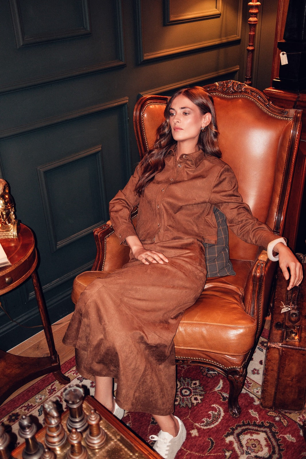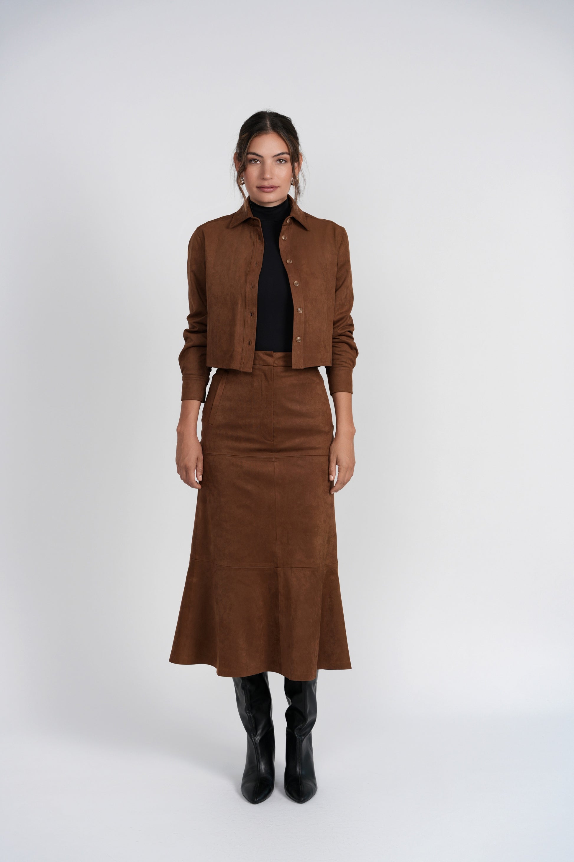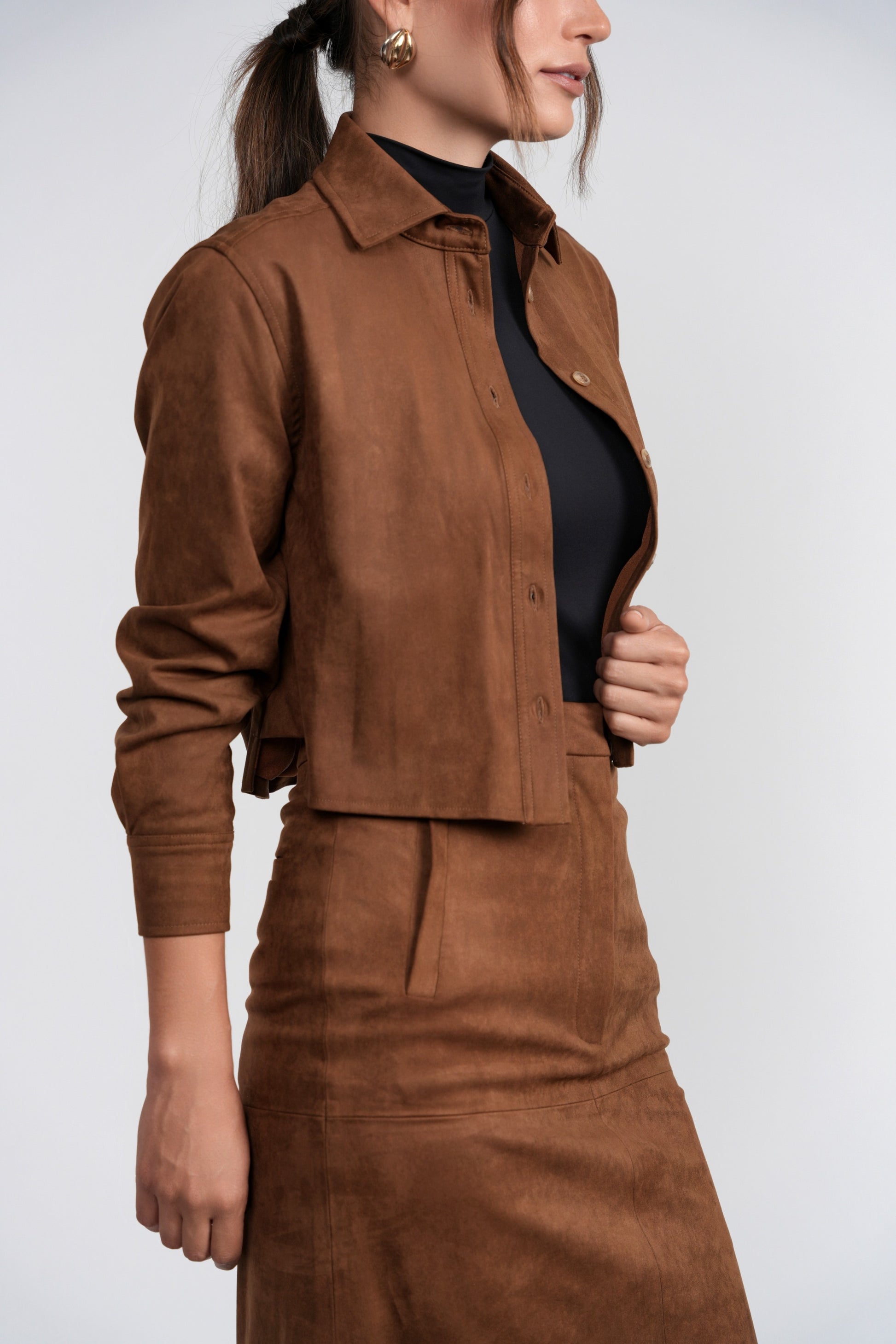 • The Roxy Top is a luxe update to your everyday button-down, crafted from supple faux suede with a subtle, structured drape.