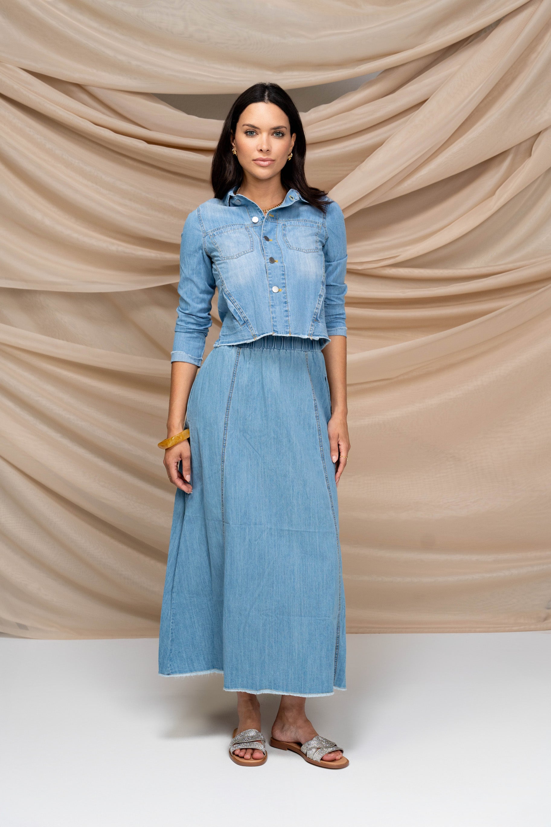 The Steph Shirt and Steph Skirt redefine denim with a refined yet relaxed edge